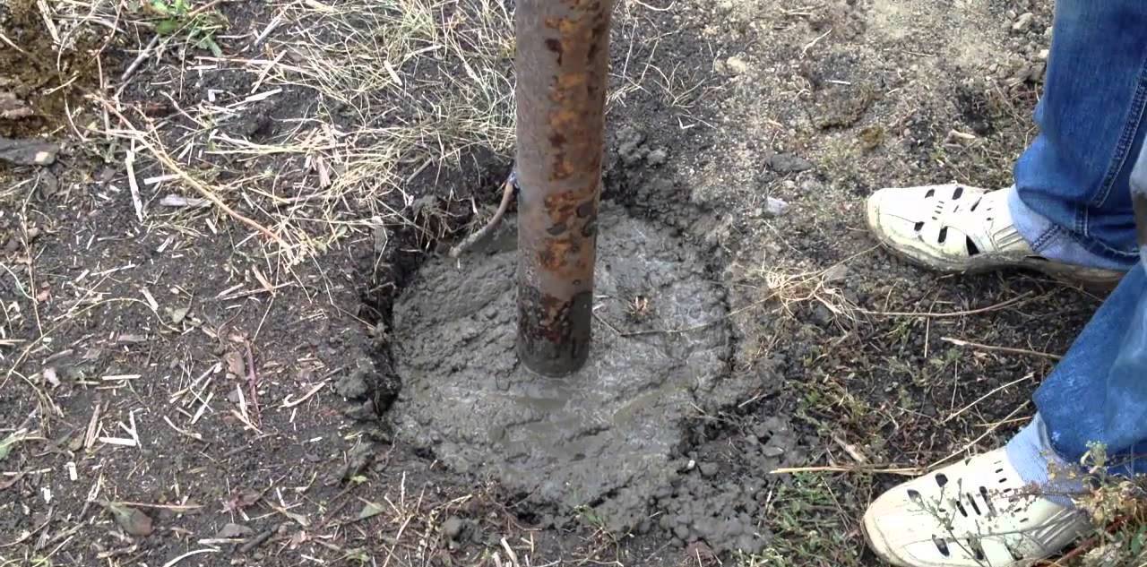 Установка столбиков с помощью бетонирования самый популярный и универсальный способ. Если грунт не отличается повышенной влажностью, то использование бетонного раствора для укрепления опор будет рационально. Такой способ подходит в случае, если планируется монтаж металлических, деревянных или железобетонных конструкций.