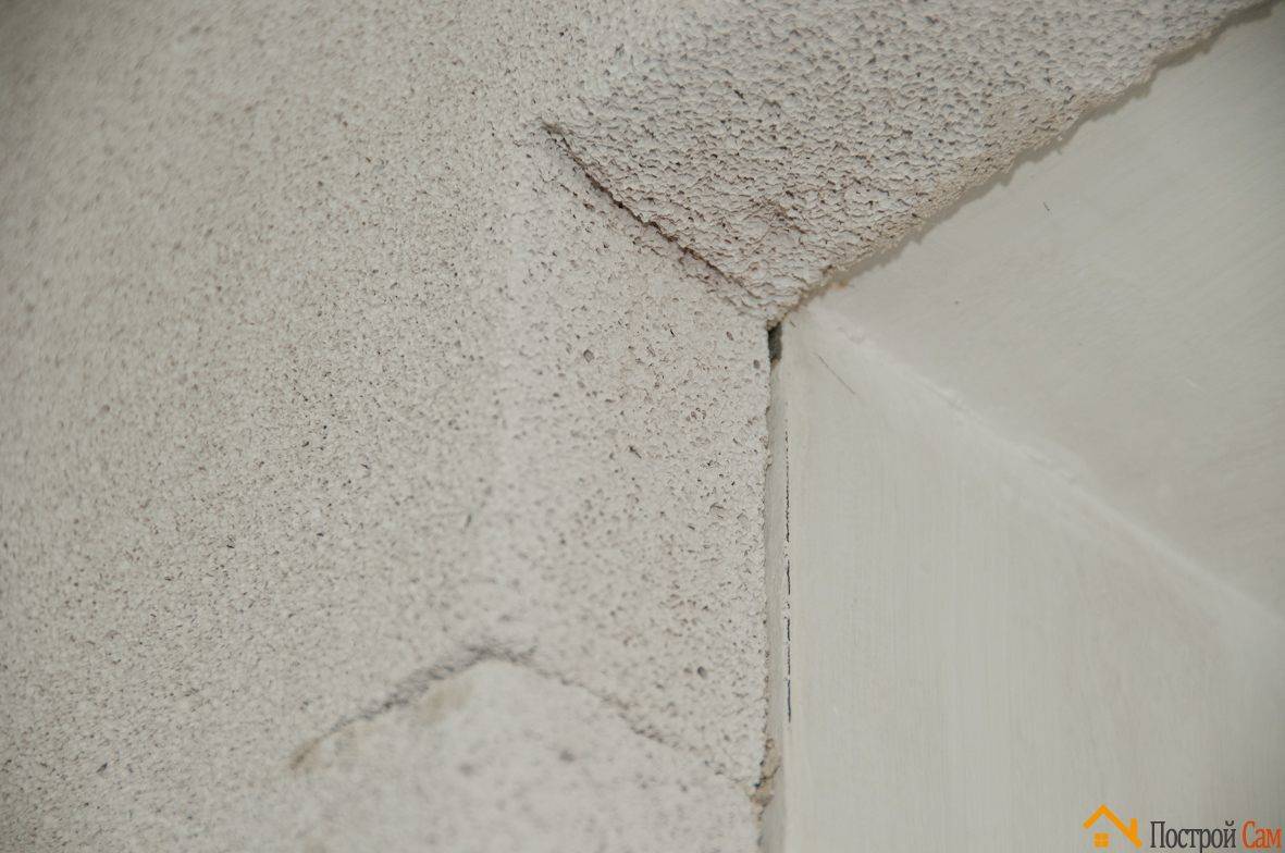 Установите перфорированные уголки на все откосы с использованием сетки для защиты от трещин. Также нанесите сетку поверх всей области блоков.