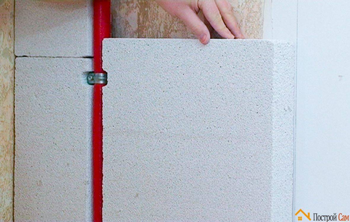 Минеральные изоляционные плиты позволяют скрыть трубы отопления в стене. Перед тем как трубы будут утеплены, они должны быть тщательно изолированы вспененным полиэтиленом.