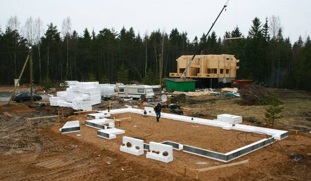 У специалистов есть мнение, что вместо пенополистирола для фундамента лучше использовать экструзию с большой плотностью.
