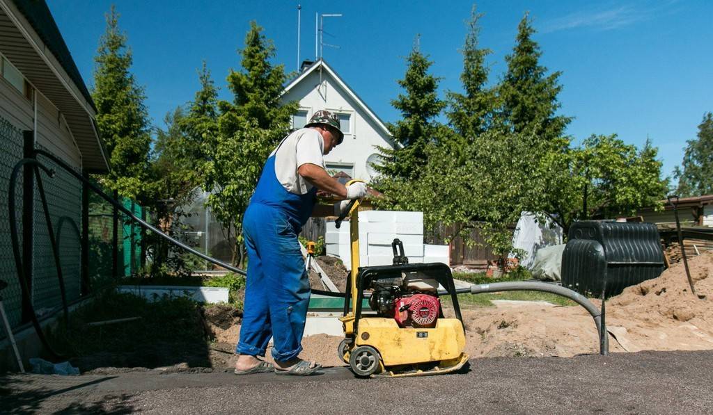 - Обратная отсыпка дома, необходимость в уплотнении каждых 10 см слоя отсыпки;