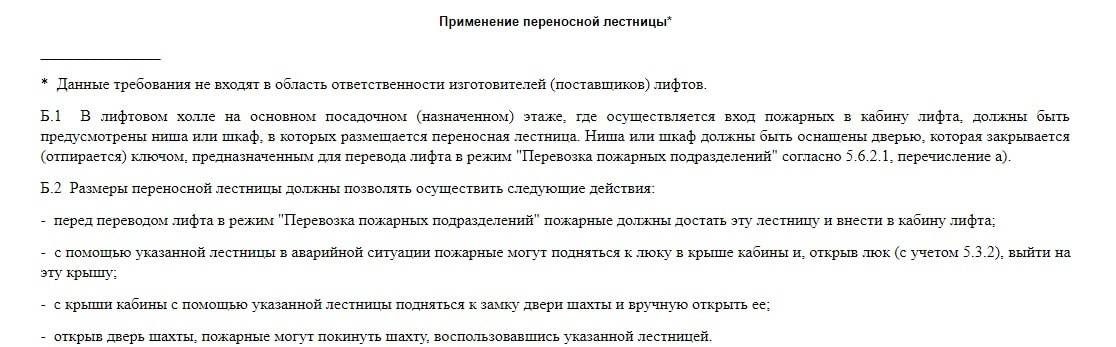 Кроме того, к исполнению, комплектации, устройству таких лифтов существуют определенные требования норм/правил ПБ: