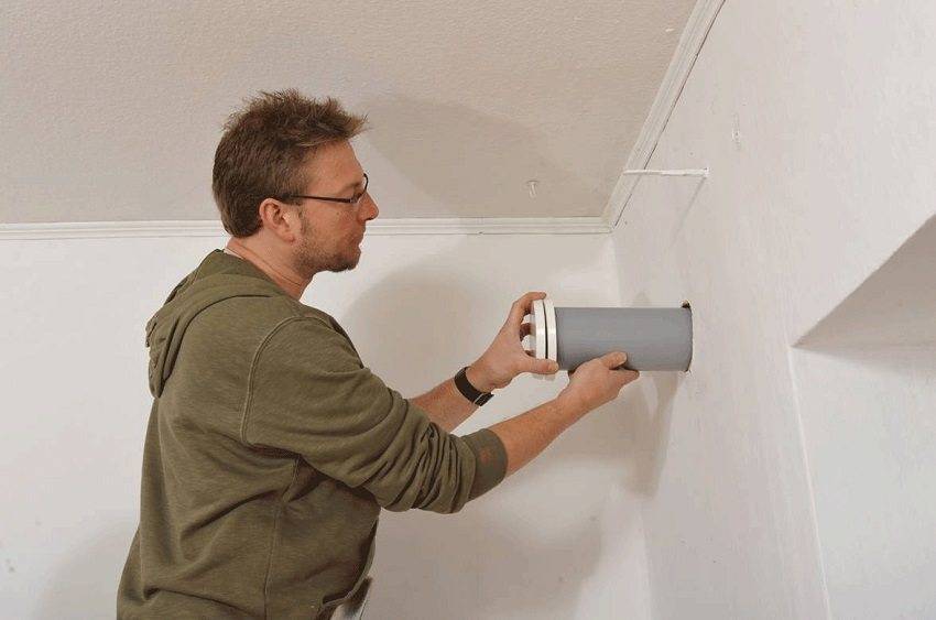 Алгоритм устройства естественной системы проветривания с применением указанных приспособлений простой. Делаем в стене отверстие сечением 6–13 см. Устанавливаем в него трубу, выполняющую функцию вентканала, предварительно обернув ее звуко- и теплоизолирующим материалом. Затем монтируем приточный клапан, оснащаем его заслонкой для регулировки подачи воздуха.