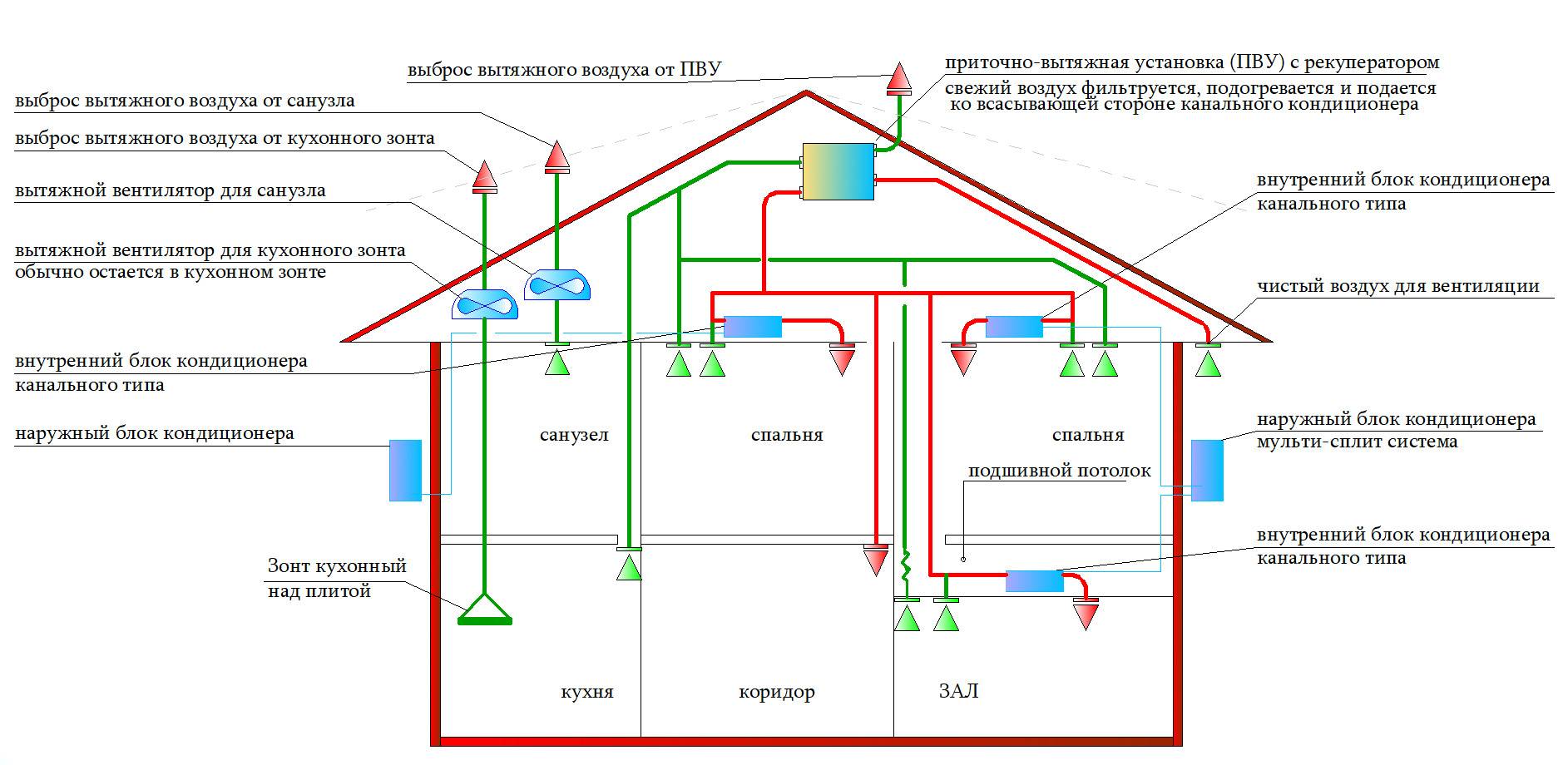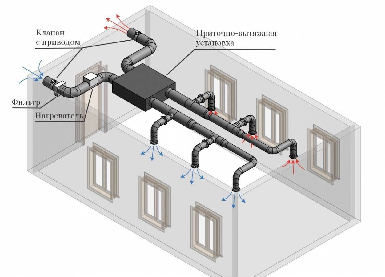 Схема вентиляции в частном доме моноблочной системы выглядит приблизительно так: