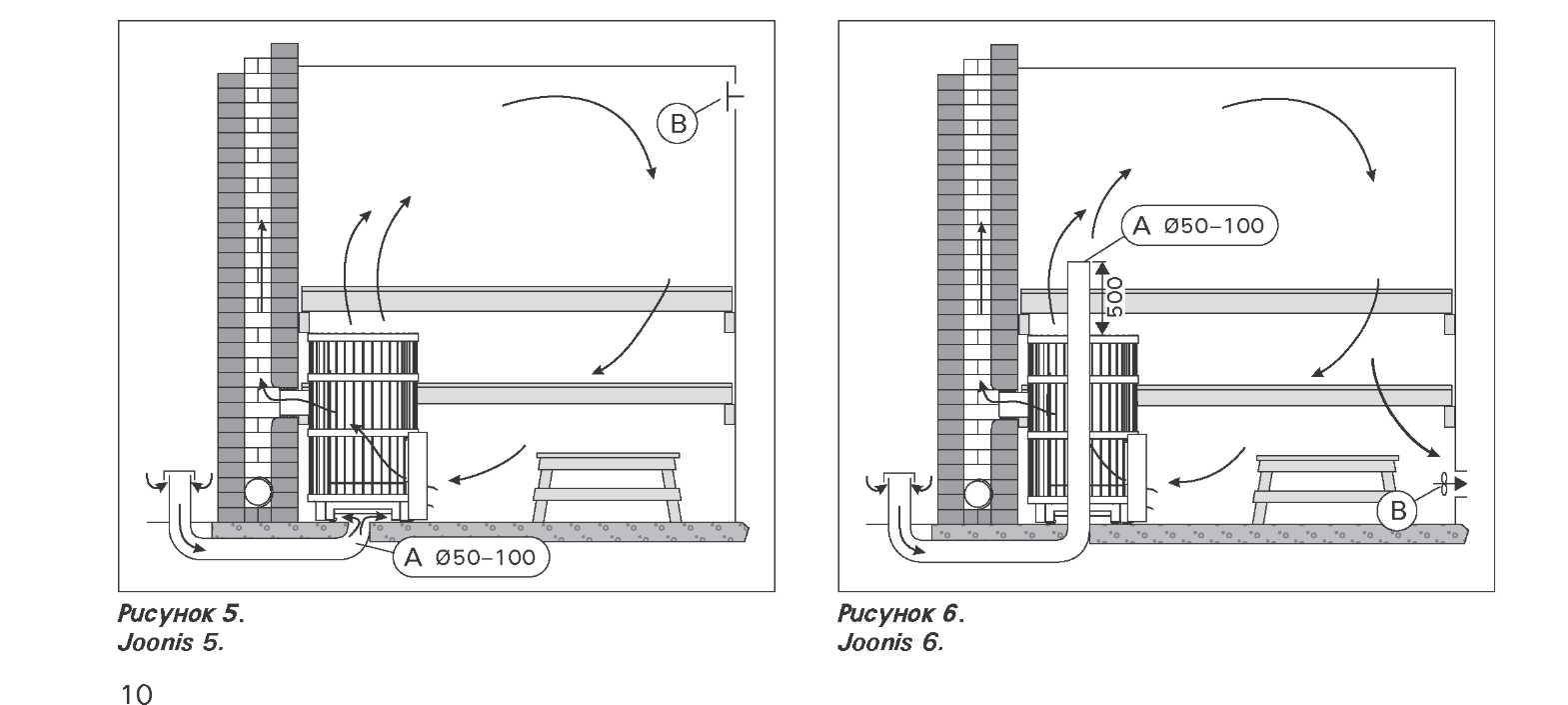 Рисунок 1. Естественная вентиляция происходит за счёт разницы давления воздуха в парилке