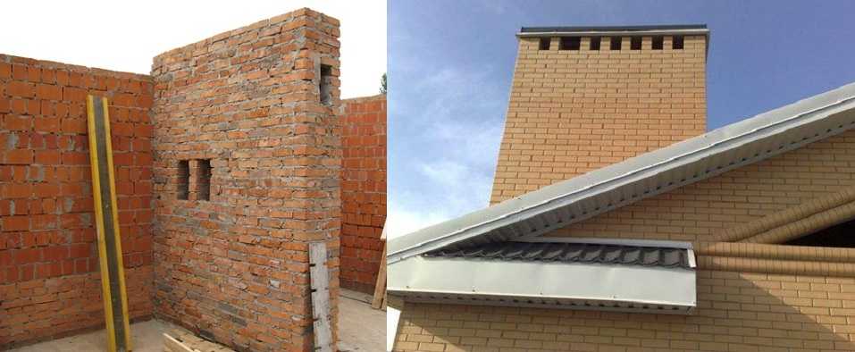 Еще один способ устройства вентиляционных каналов: вывести его через стену, а затем по наружной стене поднять вверх . По правилам, для нормальной тяги при естественной вентиляции они должны возвышаться над коньком на 50 см. А вот один общий воздуховод будет вами выводится или на каждое помещение отдельный — зависит от вашего желания или от планировки. Картина получится примерно такой.
