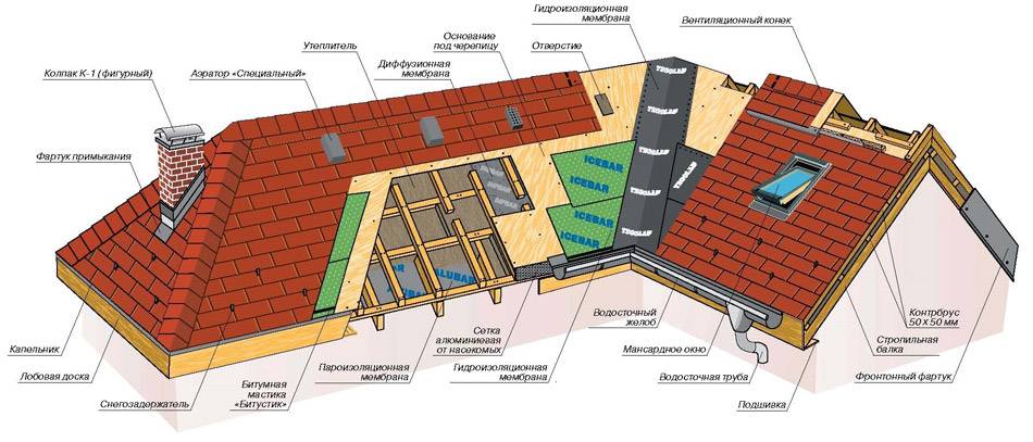 - Вентиляция пространства под кровлей. Обеспечивает удаление водяных паров из чердачного или мансардного помещения, не давая им оседать на элементах конструкции в виде конденсата.