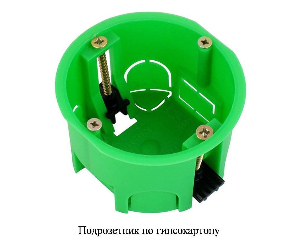 - выбирать подрозетники для гипсокартона из самозатухающей пластмассы. При нагревании розетки тепло от нее не будет передаваться в окружающий гипсокартон. Это дополнительная безопасность на случай короткого замыкания;
