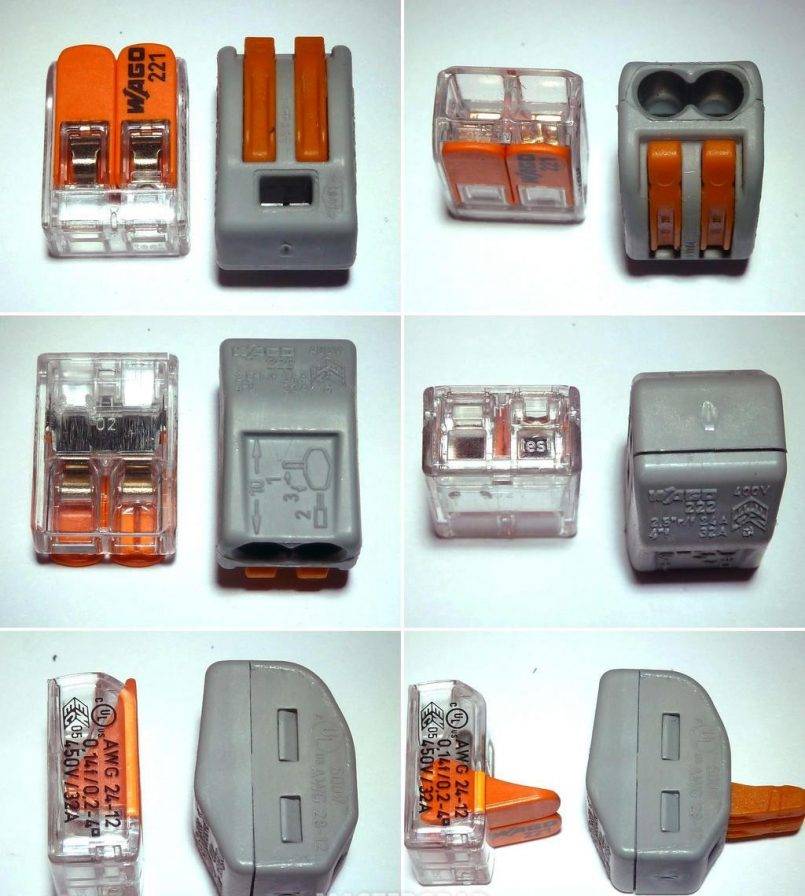 Клеммники WAGO для распределительных коробок позволяют соединять от одного до восьми проводников сечением 1,0—2,5 мм2 или три проводника сечением 2,5—4,0 мм2. А клеммники для светильников соединяют 2—3 проводника сечением 0,5—2,5 мм2.