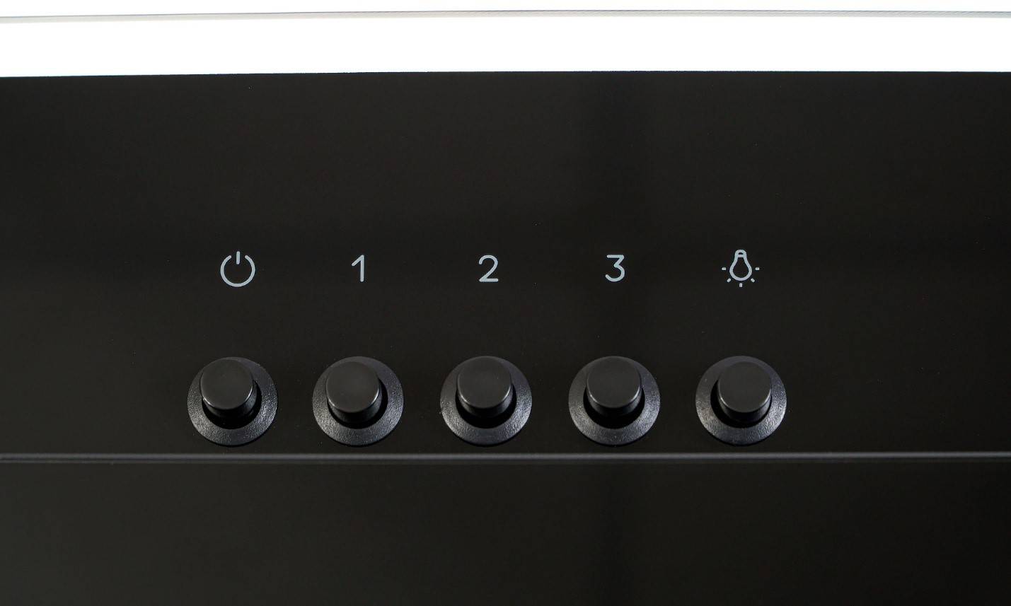 Обычно присутствуют кнопки включения устройства, включения подсветки и регулировки скорости. Это управление вытяжки чаще всего встречается в бюджетных моделях.