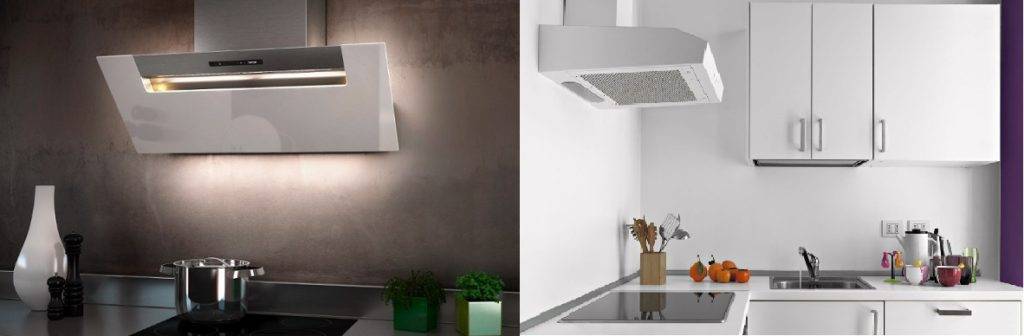Очень важно при выборе вытяжки наклонного типа заранее определиться со схемой расположения кухонной стенки. Чтобы не было проблем при установке вытяжного устройства