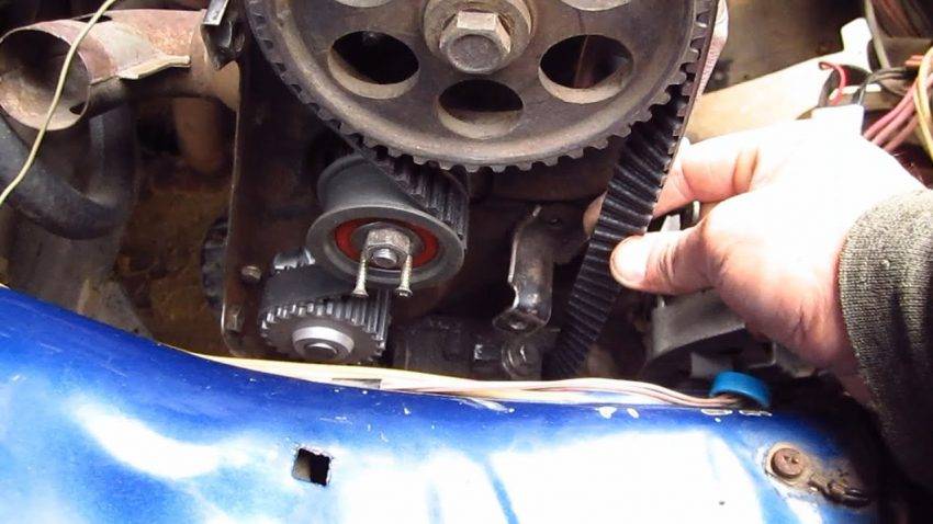 - Срываем болт зубчатого шкива при помощи ключа на 17. Перед этим нужно выставить весь механизм по меткам.